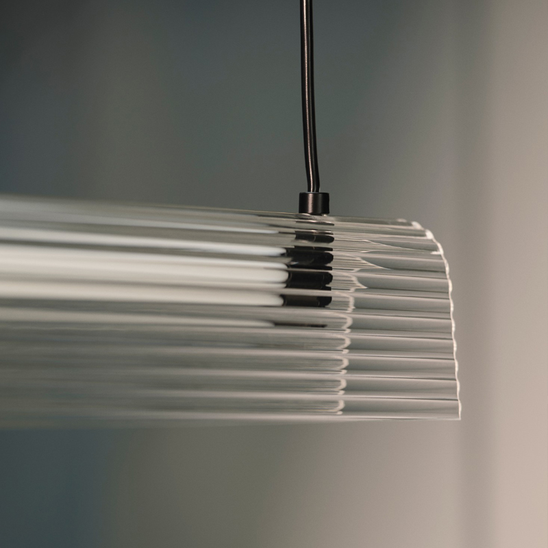 Aliani has a clean, modern design with a ribbed acrylic shade that adds structure and visual depth. The slim profile makes it ideal above a dining table or kitchen island, where it provides a pleasant, dimmable light without taking up much visual space.
