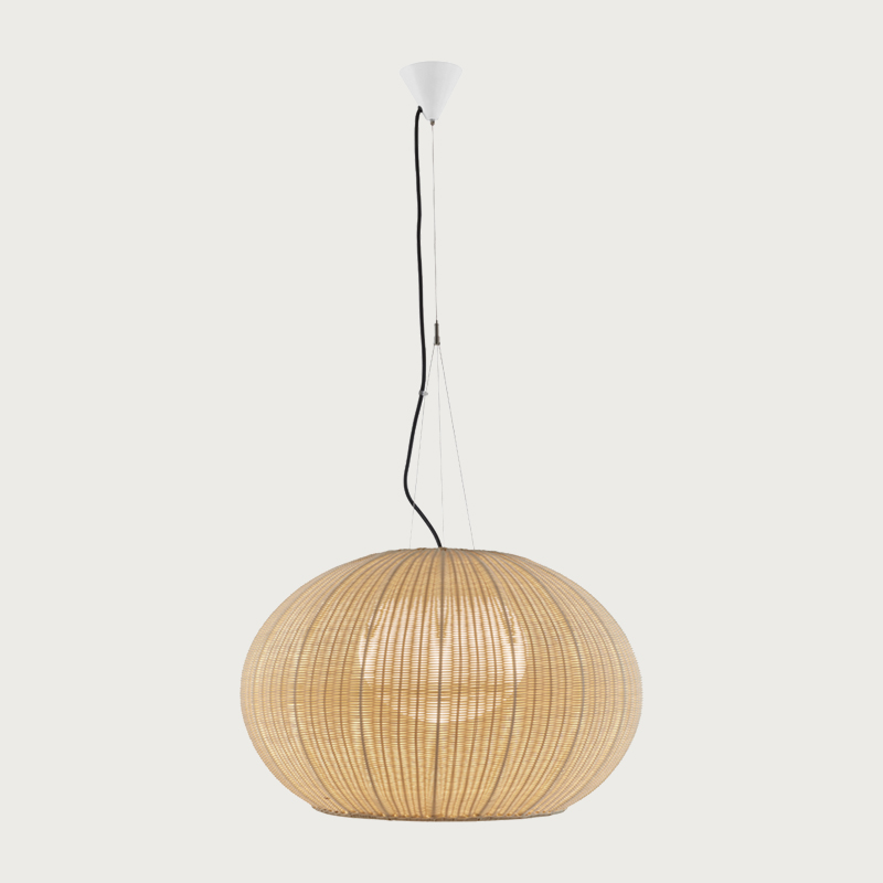 The Garotas are part of a diverse collection of outdoor lamps that create unique environments and contain a common concept, the shade in the form of a sea urchin. The shades are hand woven with a recyclable and non-toxic synthetic polyethylene fiber, while the light source is protected by a UV resistant polyethylene globe.