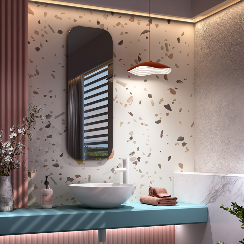 The Valentina S/24 pendant features a soft, sculptural form with a layered interior that creates warm, comfortable downward light. Its organic shape brings a gentle sense of movement, making it ideal for use above service areas, benchtops, or bedsides.