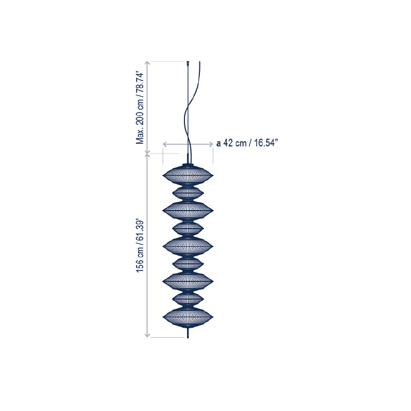 Dimensions: Ø 420mm x H 1560mm | 2000mm Suspension Cable