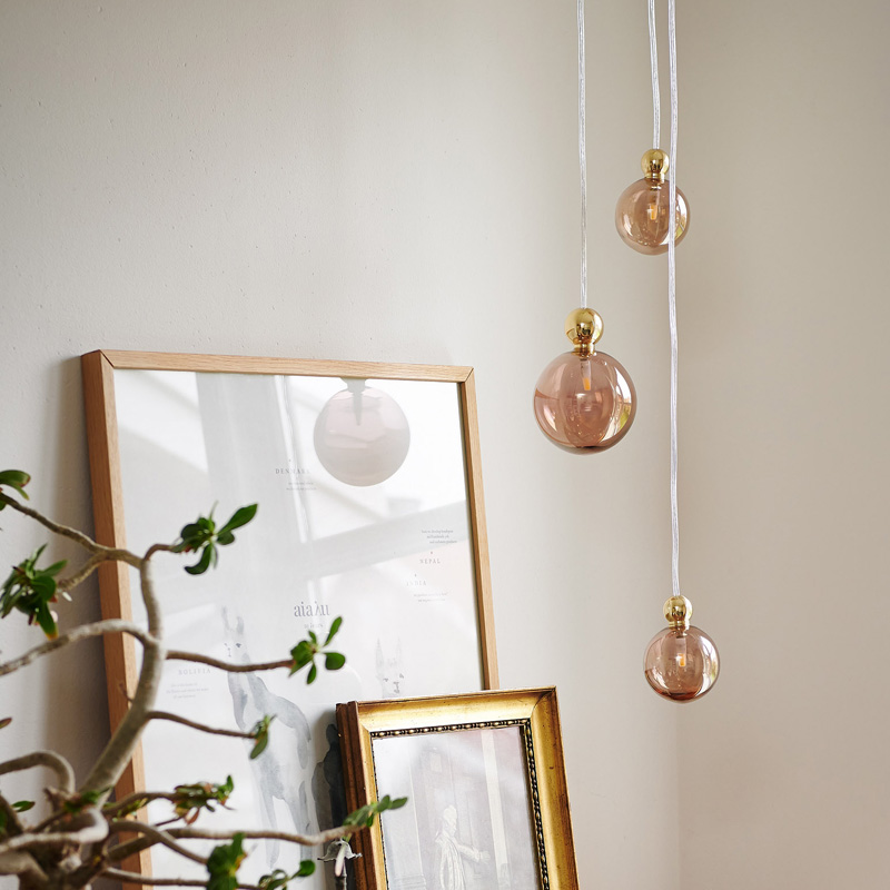 A blend of mouth-blown glass and metal finishes in a variety of colours.