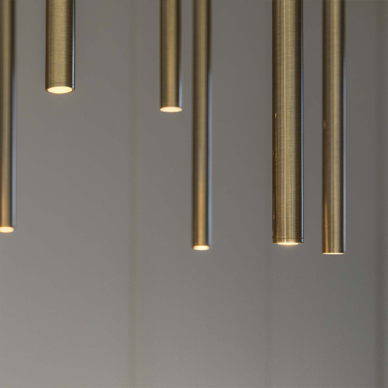 The Filo 12-Light Pendant creates a dramatic statement with its cascading arrangement of slender tubular lights. Elegant and contemporary, it provides both striking visual impact and warm illumination over dining or living spaces.
