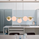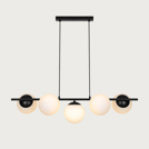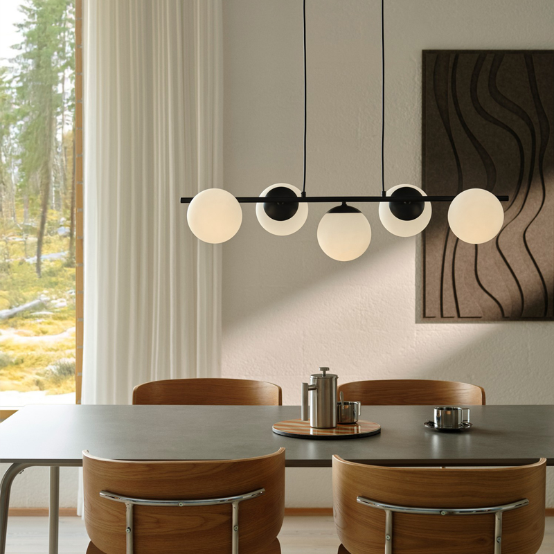 Lilly beautifully balances simplicity with elegance. The minimalist metal frame contrasts softly with the luminous opal glass domes, which spread a warm and pleasant light. The combination of clean lines and round glass shades creates a refined and decorative design that works perfectly above a dining table or in the living area.
