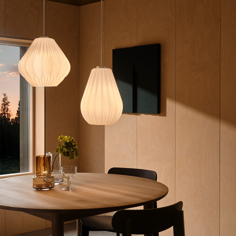Maluca combines classic form with modern simplicity. The shade in matt opal glass provides a soft, diffused light that creates a warm and welcoming atmosphere. The subtle pleated details add texture and character to this elegant design.