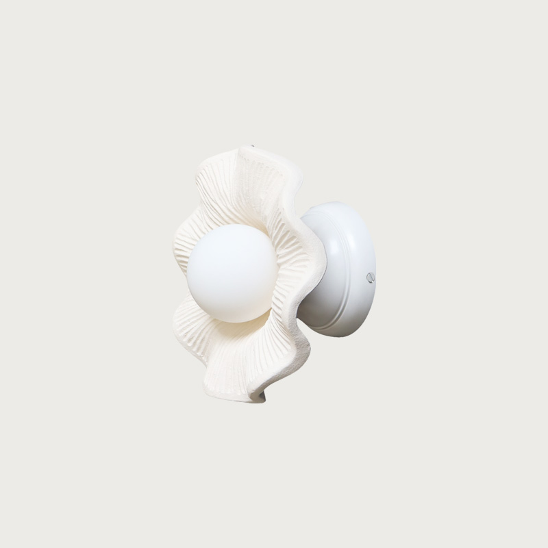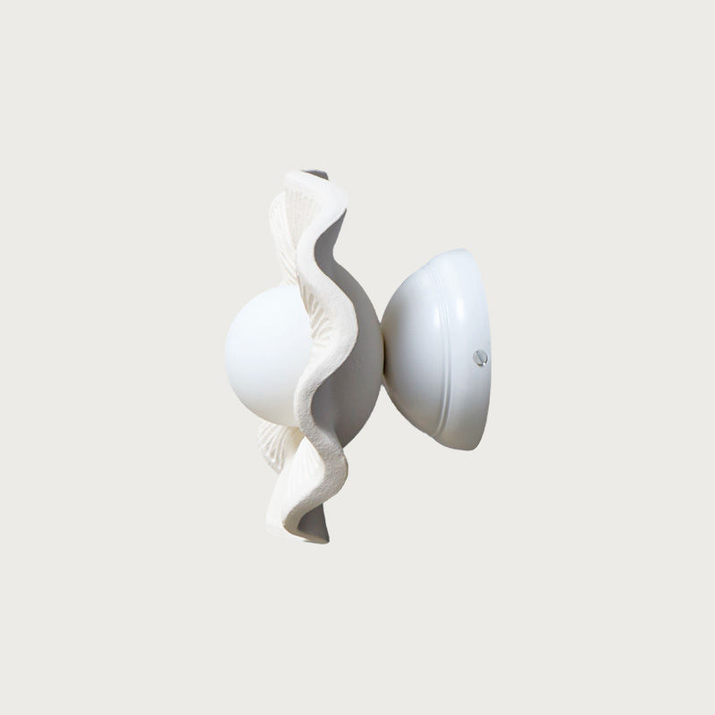 The Rivale ceramic wall light is a charming addition to interiors with a nature-inspired design that reflects its organic roots. It features a handcrafted, matte white wavy ceramic shade with an opal glass globe in its centre.
