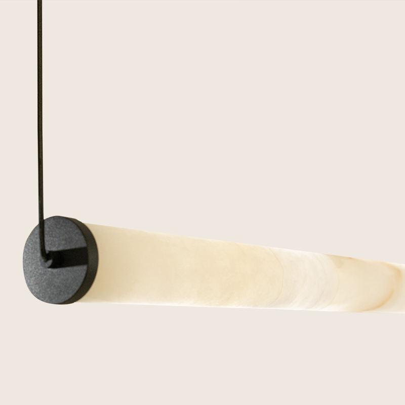 The Zeus Axis Pendant features a slim linear profile, offering a contemporary statement ideal for kitchen islands, dining spaces and minimalist interiors.