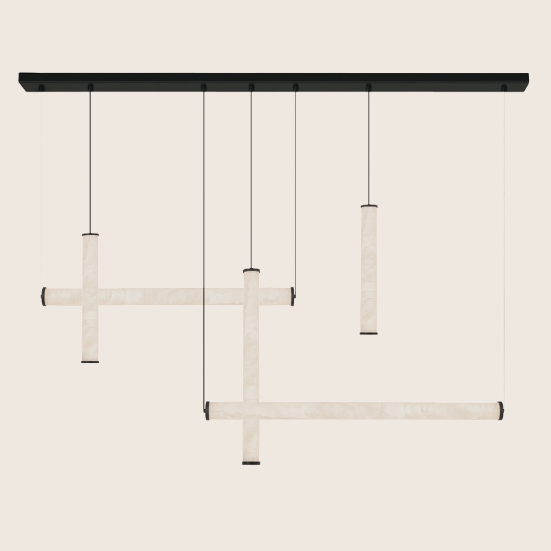 The Zeus Axis Pendant Multi features a combination of slim linear profiles, offering a contemporary statement ideal for kitchen islands, dining spaces and minimalist interiors.