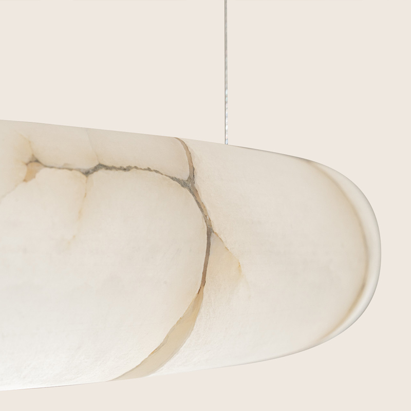 The Zeus Collection showcases sculptural alabaster forms, each crafted to highlight the stone’s natural veining and warm diffusion. Designed to evoke Mediterranean calm, the Zeus range offers a refined, atmospheric presence suited to modern living, hospitality and architectural spaces. The Zeus Halo is ideal for kitchen islands, dining areas and contemporary interiors.