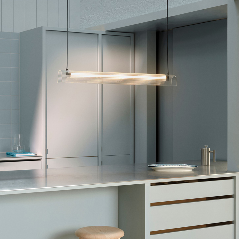 Aliani has a clean, modern design with a ribbed acrylic shade that adds structure and visual depth. The slim profile makes it ideal above a dining table or kitchen island, where it provides a pleasant, dimmable light without taking up much visual space.