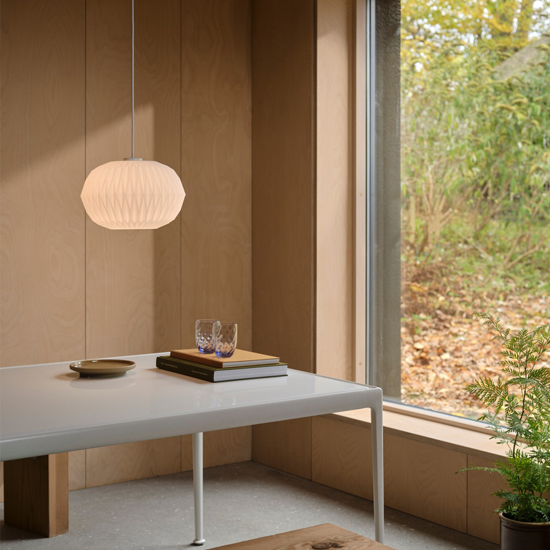Aviana combines classic form with modern simplicity. The shade in matt opal glass provides a soft, diffused light that creates a warm and welcoming atmosphere. The subtle geometric details add texture and character to this elegant design.