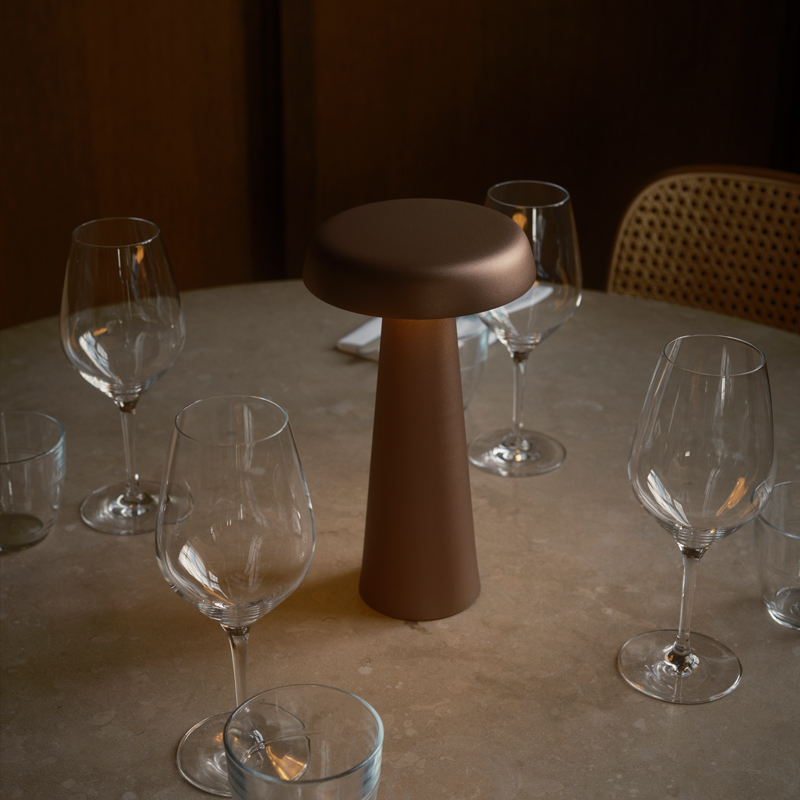 With Arcello, Danish design duo Bjørn + Balle has created an elegant portable light with a pleasant, downward facing light. The design is simple, yet distinct with a beautiful, uniform anodized surface from top to bottom. The lamp is easily charged with the included USB cable. Available in either Burnished Brass or Anthracite.