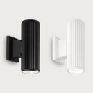 This textured outdoor wall light features a die-cast Aluminium body, powder coated in either a Black or White finish. Easy access to the lamp holders by a threaded glass diffuser on either end of the fitting.