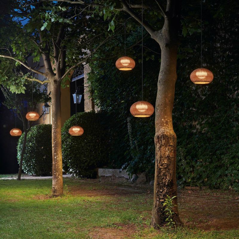 The Garotas are part of a diverse collection of outdoor lamps that create unique environments and contain a common concept, the shade in the form of a sea urchin. The shades are hand woven with a recyclable and non-toxic synthetic polyethylene fiber, while the light source is protected by a UV resistant polyethylene globe.