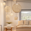 The design intent of the Nans collection was to highlight the craftsmanship of the lampshades and to explore different ways of weaving, by combining different colours and formats to create a true Mediterranean style.