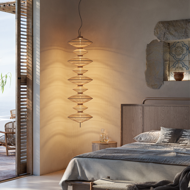 The Yuyun series introduces a soft, vertical lighting statement for double-height spaces, stairwells, and feature corners. Each pendant is handwoven in continuous cotton thread with a warm beige finish, offering gentle texture and a refined glow. With two shade sizes and fully customisable compositions, Yuyun allows you to create anything from a simple drop to a dramatic multi-tiered feature - tailored perfectly to your space.