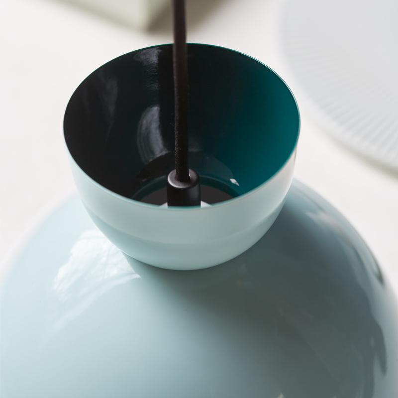 Interior pendant light available in white, black, rose and light blue. Also available in a 27cm size (price varies). 3000mm fabric cable suspension. Designed in Denmark.