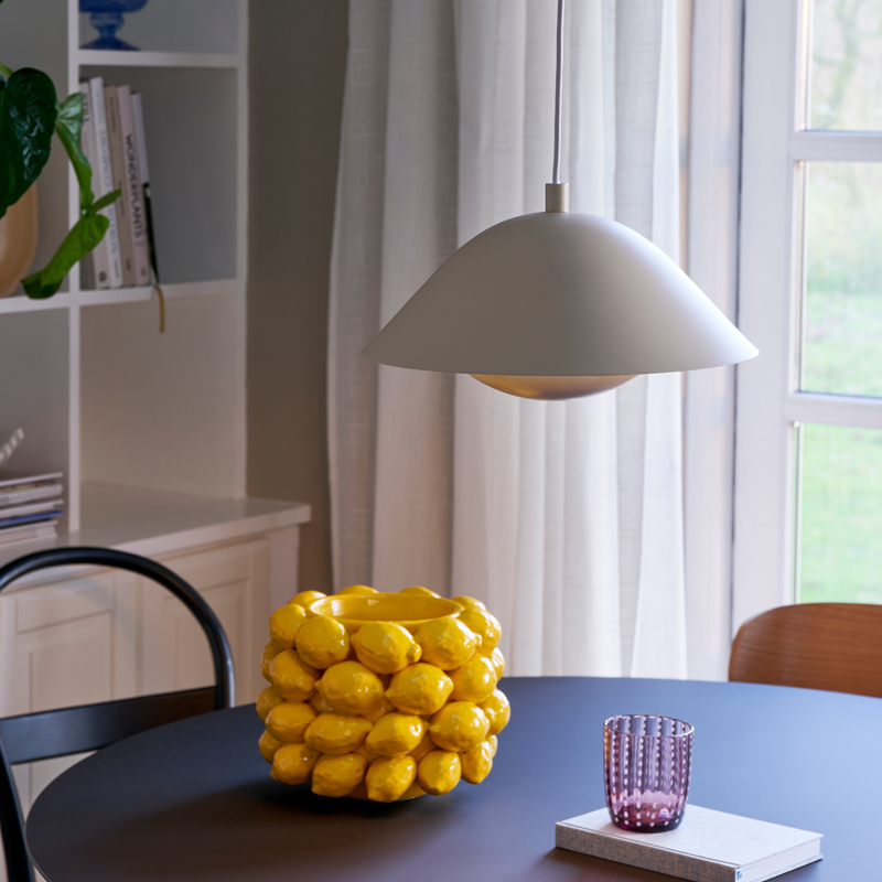 Freya is a family of organically shaped lights in a Nordic contemporary design. The almost oversized top shade embraces the lower and completes the elegant silhouette - while at the same time covering the light source for pleasant indirect illumination.