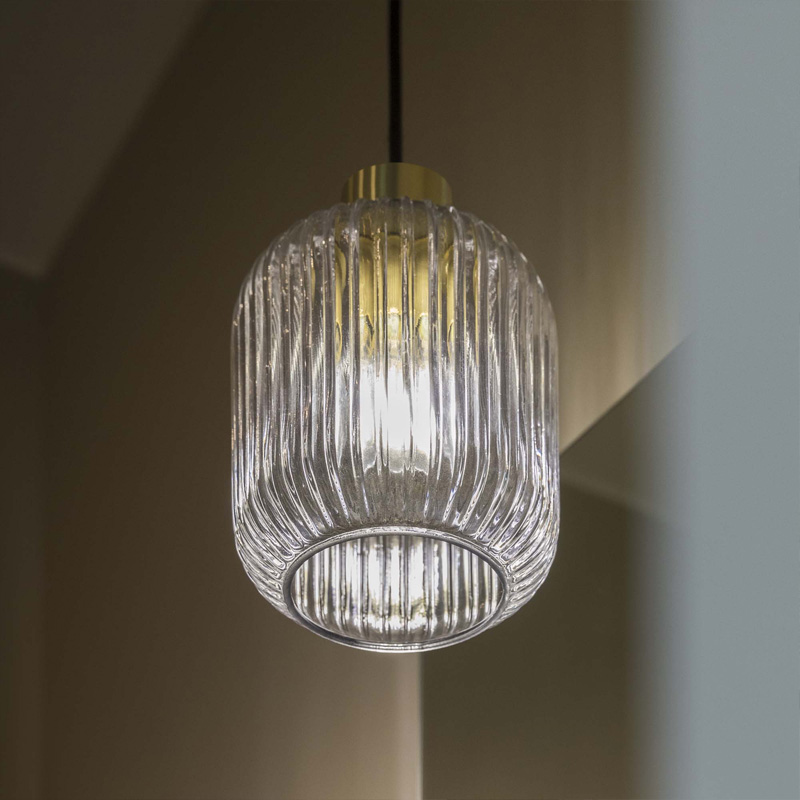 A decorative collection of lamps that feature the trendy pairing of glass and brass. Available in either smoke or mint green glass, featuring a ribbed shade that diffuses the internal light while creating a pleasant light display.Indoor use only.