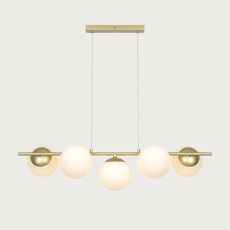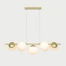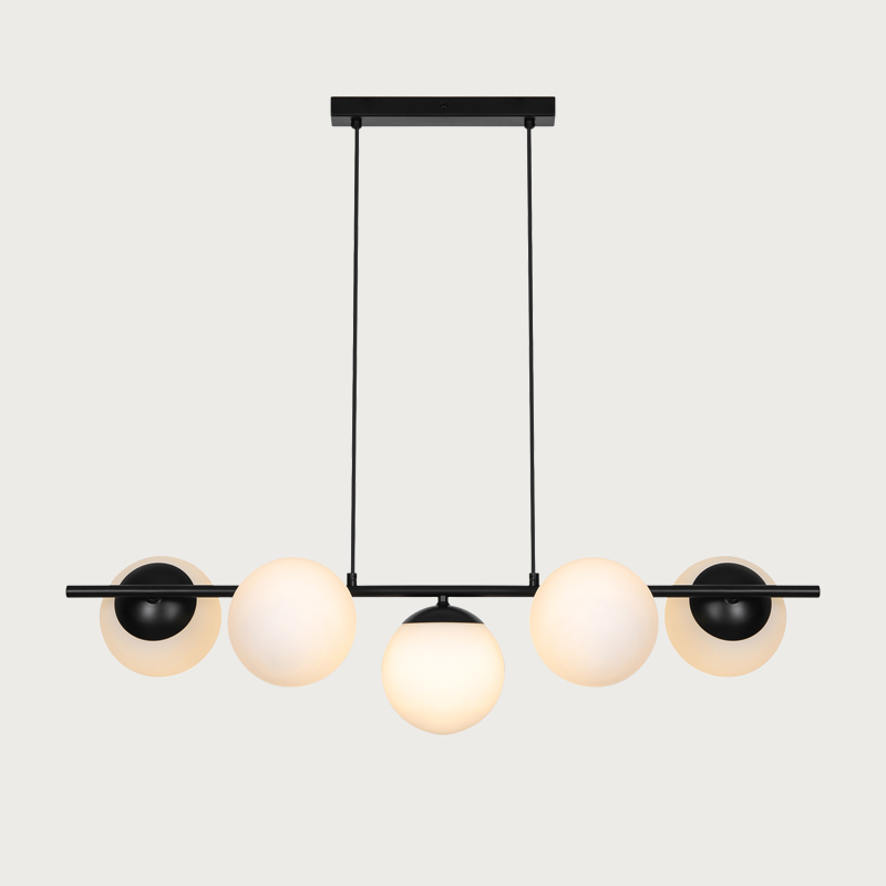 Lilly beautifully balances simplicity with elegance. The minimalist metal frame contrasts softly with the luminous opal glass domes, which spread a warm and pleasant light. The combination of clean lines and round glass shades creates a refined and decorative design that works perfectly above a dining table or in the living area.