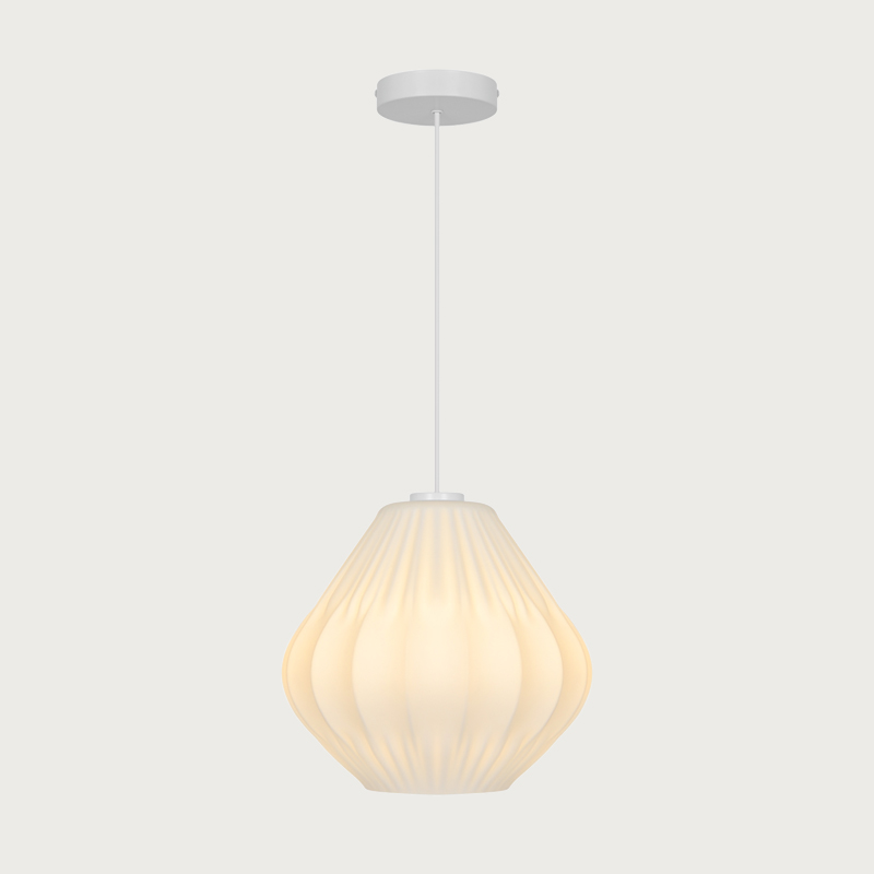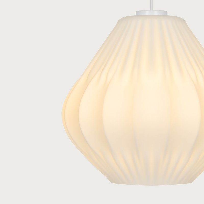 Maluca combines classic form with modern simplicity. The shade in matt opal glass provides a soft, diffused light that creates a warm and welcoming atmosphere. The subtle pleated details add texture and character to this elegant design.