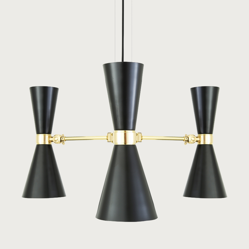 Featuring a sophisticated design, the Cairo Chandelier melds a mid-century modern style with a futuristic twist featuring 3 individually adjustable shades, providing ample light for any setting.