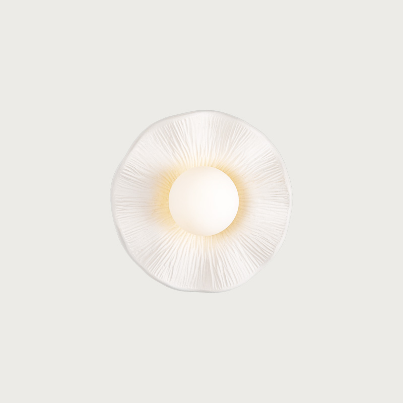 The Rivale ceramic wall light is a charming addition to interiors with a nature-inspired design that reflects its organic roots. It features a handcrafted, matte white wavy ceramic shade with an opal glass globe in its centre.