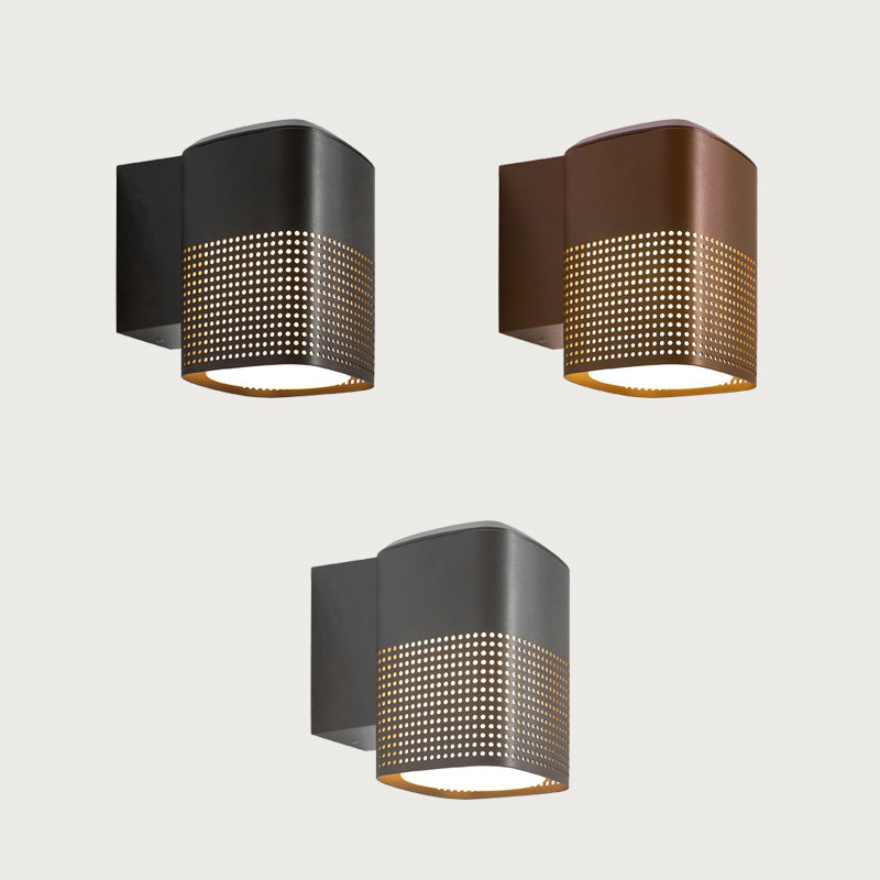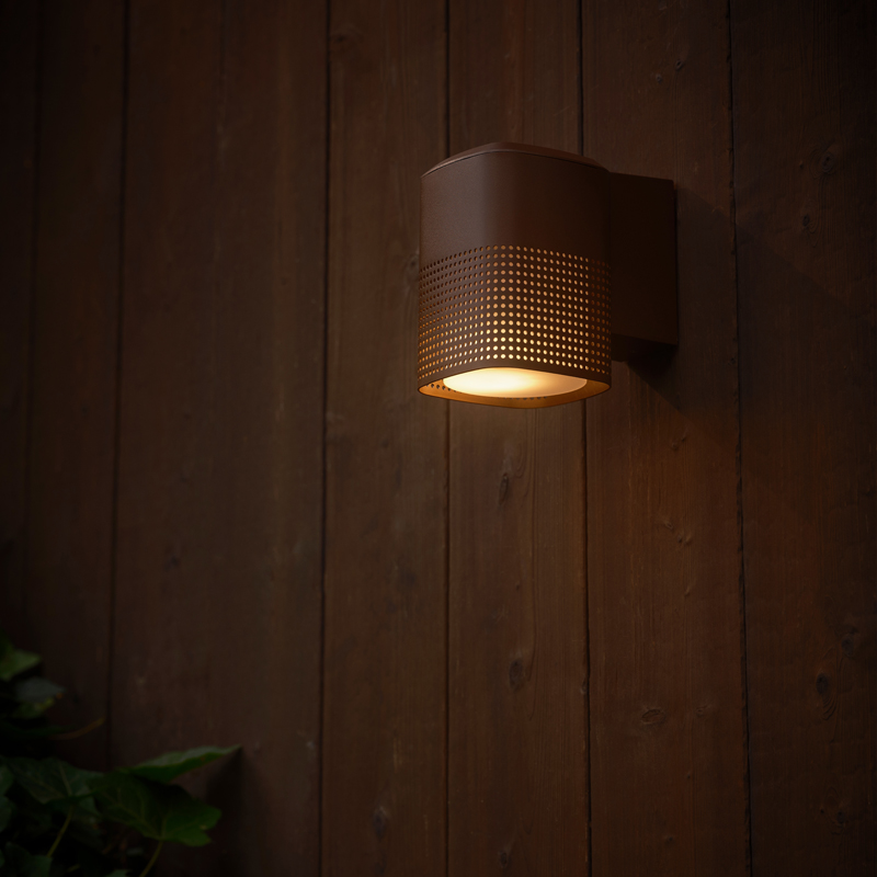The Sidara wall light combines modern minimalism with a refined, architectural expression. The perforated surface creates a beautiful play of light and shadow in your outdoor areas.