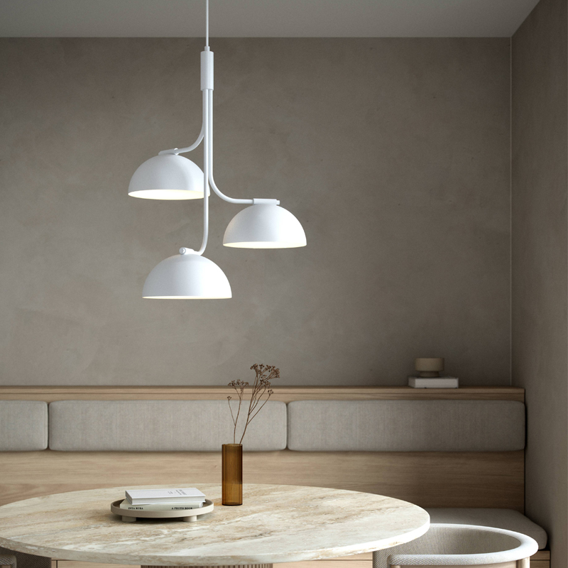 The Tullio pendant by Danish designers Anker Studio has a soft and arched mode of expression - recognisable shapes put together in a new, interesting combination. The three round shades are elegantly placed together, creating a grand and sculptural design. Diffusers ensure a uniform light surface and a glare-free light. Available in Black or White.