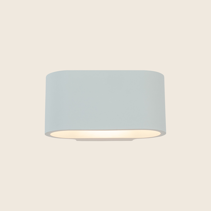 The Olympia Collection spans both gypsum and concrete materials, showcased in a range of architectural wall lights that balance minimal geometry with the timeless character of Olympia. Crafted from Gypsum, the Olympia Ellipse features a gently curved, elongated profile that washes light softly up and down, offering a smooth, contemporary accent suited to hallways, living spaces and refined architectural interiors.