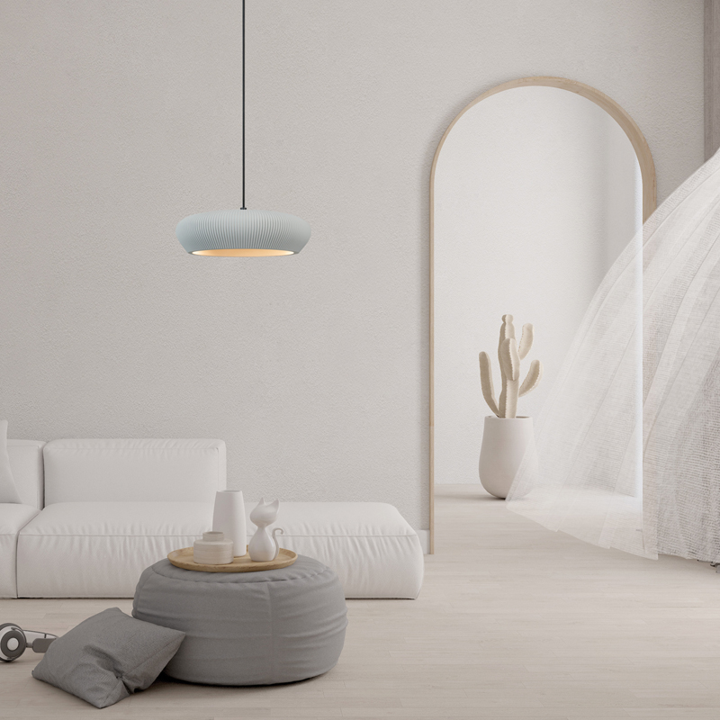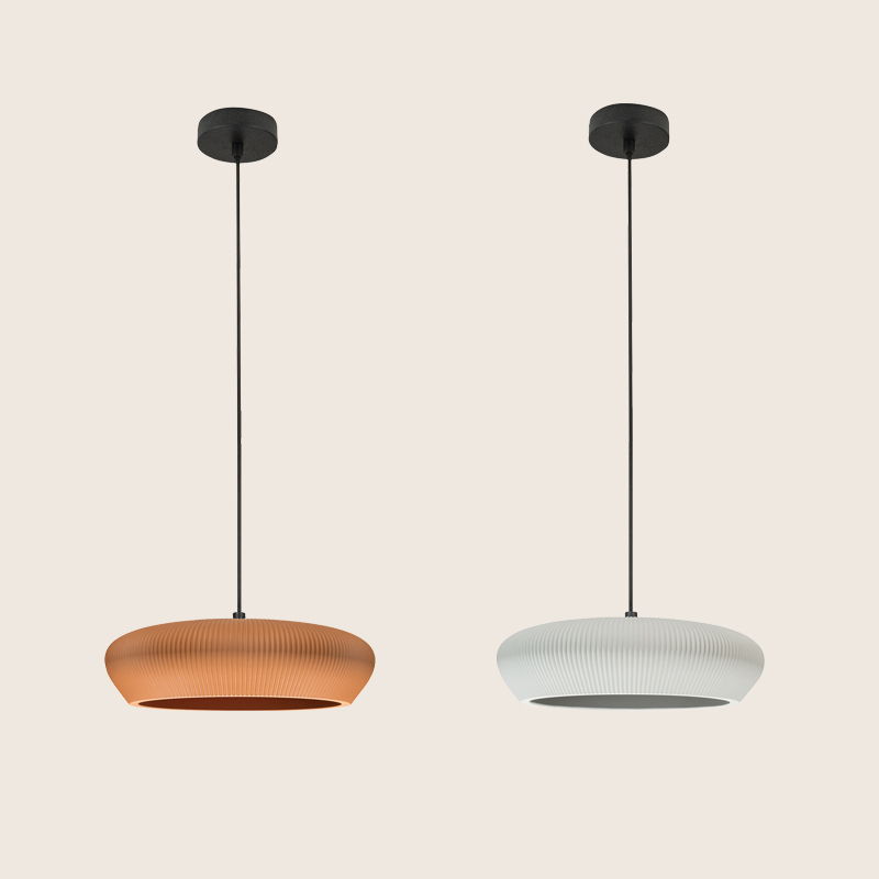 The Patera Pendant reinterprets the shallow Greek ceremonial dish, expressed here as a wide ribbed form that casts a soft, ambient glow. Its gentle profile suits living spaces, dining areas and warm decorative statements.
