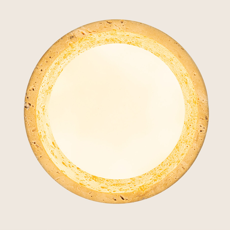 A sculptural travertine dome paired with a smooth glass diffuser and stained wood base, the Petra Orb Wall Light brings warm, organic character to modern interiors. Its carved stone form softens the glow, creating a gentle, atmospheric accent.