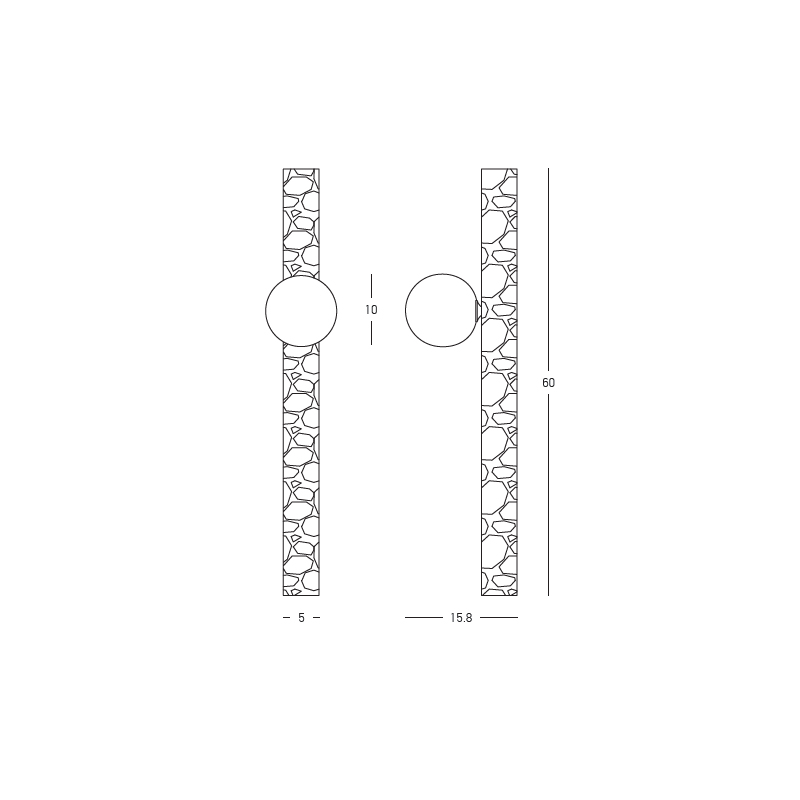 A sleek travertine wall light with a vertical, column-like form and a softly glowing opal sphere. The Petra Stilos brings sculptural warmth and natural stone texture to hallways, living spaces and refined architectural interiors.