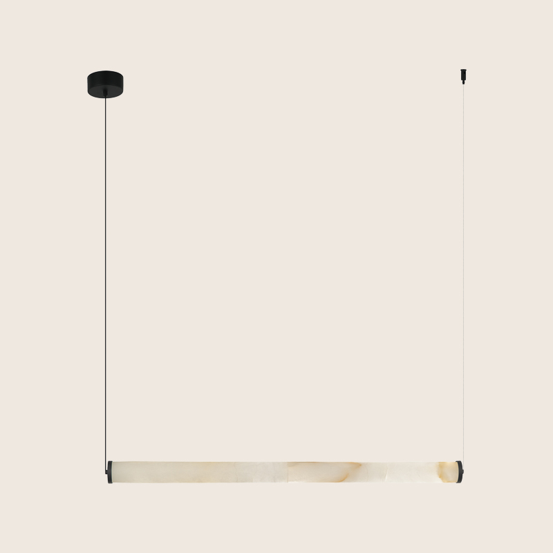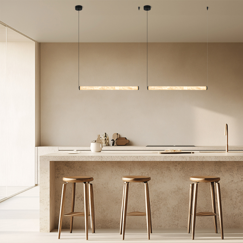 The Zeus Axis Pendant features a slim linear profile, offering a contemporary statement ideal for kitchen islands, dining spaces and minimalist interiors.