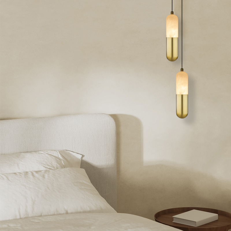 The Zeus Collection showcases sculptural alabaster forms, each crafted to highlight the stone’s natural veining and warm diffusion. Designed to evoke Mediterranean calm, the Zeus range offers a refined, atmospheric presence suited to modern living, hospitality and architectural spaces. A refined alabaster and brass pendant inspired by the glow of dawn. The Zeus Duo Pendant casts a soft, vertical warmth ideal for bedside, hallway and intimate interior lighting.